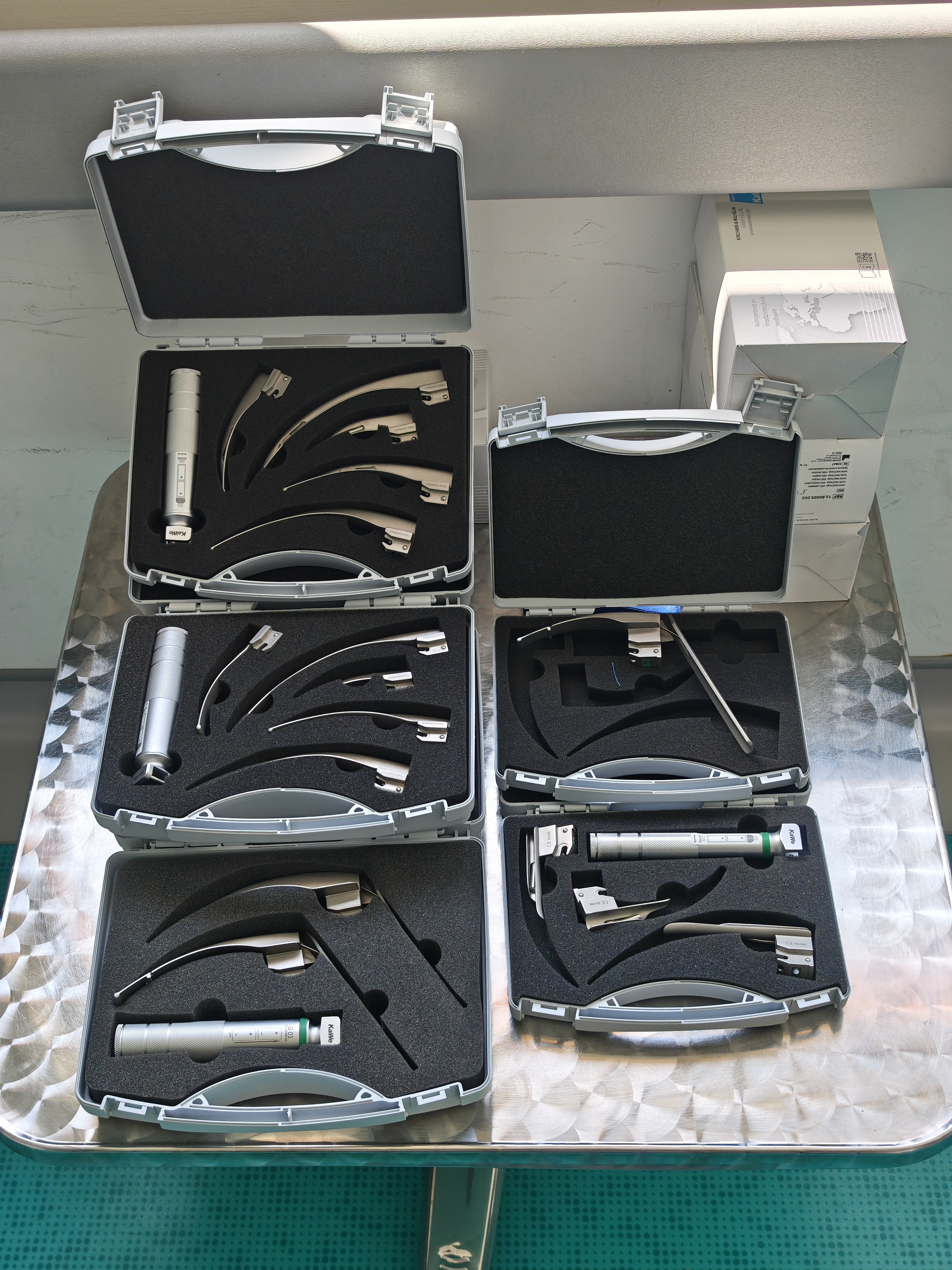 3. Ларингоскопски сет со флексибилен врв за тешка интубација – Macintosh FLAOLIGHT со три шпатули.